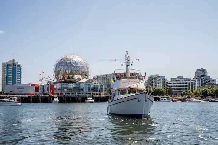 The yacht is located in the centre of False Creek surrounded by beautiful downtown, Science World, and Olympic Village.